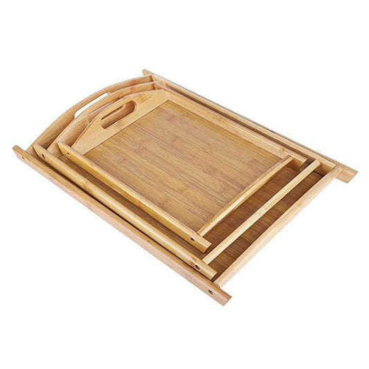 Set of 3 Wooden Serving Tray Set With Handles Premium Quality